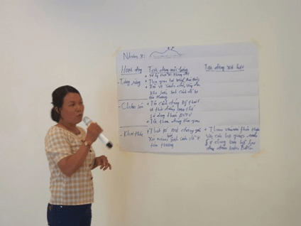 Khoá tập huấn tạo cơ hội cho các cán bộ Chi hội và HTX được giao lưu, học hỏi với sự thúc đẩy của giảng viên. Các học viên được thực hành theo nhóm, chia sẻ kinh nghiệm thực tế, và rút ra được các bài học áp dụng cho Chi hội/HTX của mình.