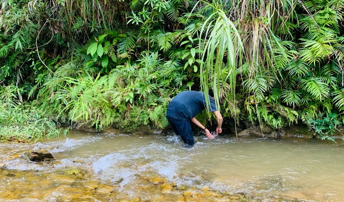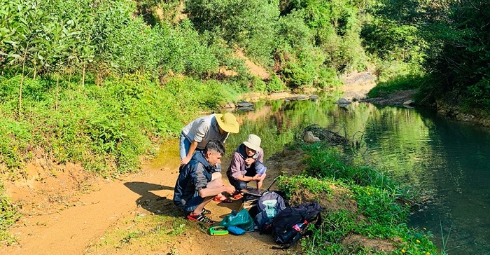 Đây là một hoạt động định kỳ trong hợp phần nghiên cứu về sinh thái của dự án “Đánh giá bản chất của hiện tượng chuyển tiếp rừng tại Việt Nam” – FTViet. Trong chuyến đi hiện trường lần này, ngoài hoạt động lấy dữ liệu từ các thiết bị logger, nhóm nghiên cứu tiến hành thu thập thêm dữ liệu về mực nước, tốc độ dòng chảy và đo mặt cắt của các con suối nhằm so sánh sự biến động lưu lượng nước tại các lưu vực thuộc rừng trồng và rừng tự nhiên, trong mùa nắng và mùa mưa. So với cùng kỳ năm 2019, mực nước năm nay giảm mạnh, các thiết bị looger tại một số vị trí bị nhô lên khỏi mặt nước. Điều này phần nào ảnh hưởng đến độ chính xác của dữ liệu thu được.