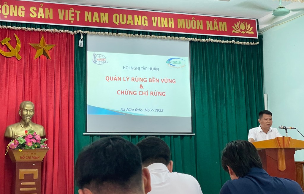 Sau cùng, đại diện các xã cũng không quên gửi lời cảm ơn đến Trung tâm CORENARM và AGRIMEX đã phối hợp với chính quyền địa phương để tạo cơ hội cho người trồng rừng tiếp cận với chứng chỉ rừng, đóng góp chung vào phát triển bền vững của địa phương.