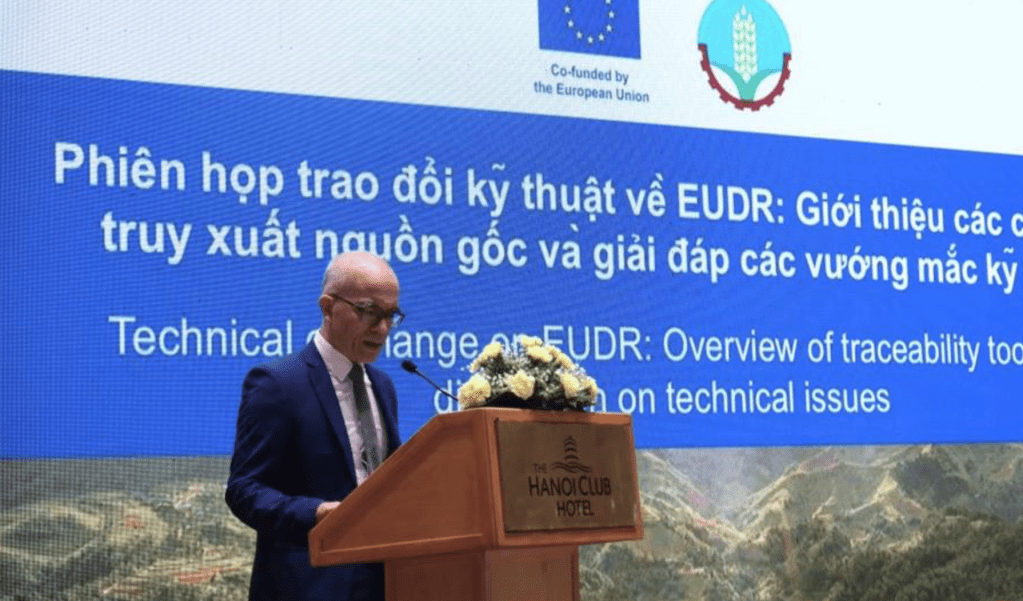 Thông tin những diễn biến mới nhất từ phía EC, TS. Rui Ludovino – Tham tán thứ nhất về Hành động Khí hậu, Môi trường, Việc làm và Chính sách xã hội, Phái đoàn EU tại Việt Nam, cho biết Quy định về việc quản lý nhập khẩu và xuất khẩu các sản phẩm không gây phá rừng, suy thoái rừng của EU (EUDR) lẽ ra bắt đầu có hiệu lực từ ngày 30/12/2024.